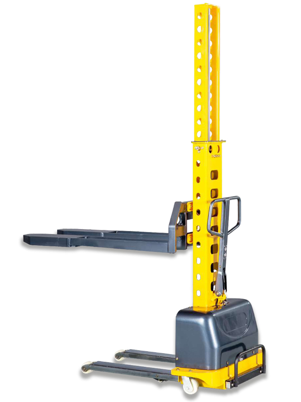 Ручной самоподъемный штабелер (функция самопогрузки/выгрузки в фургон) с мономачтой и с электроподъемом.
