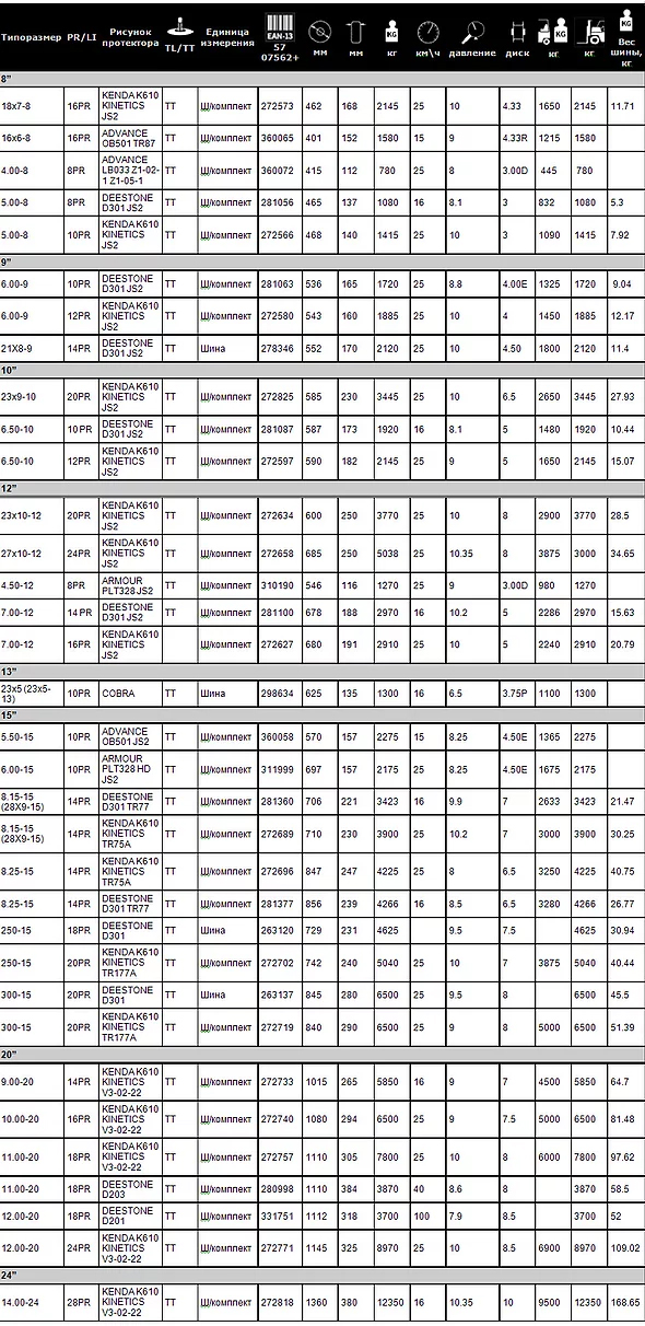 Шины для вилочных погрузчиков делят на три категории: бандажные, пневматические и цельнолитые. Первые — тупиковая ветвь развития, от которой уходят как производители, так и потребители. На металлический диск устанавливают слой из 100% каучука. Вторые — привычные всем с детства шины. Устройство аналогично шинам для гражданских автомобилей. Цельнолитые полностью состоят из резины.